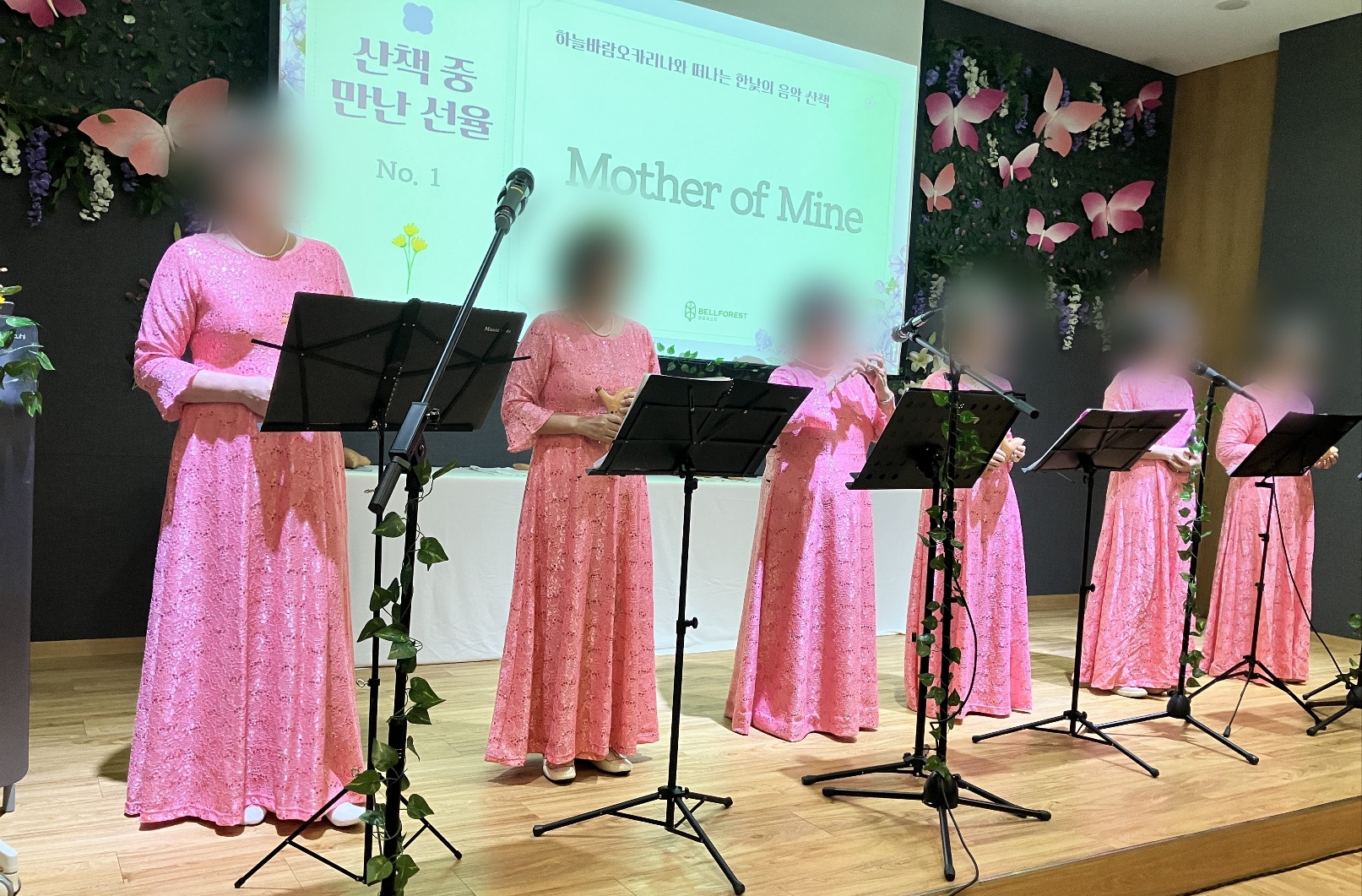 오늘 공연을 해준 ‘하늘바람 오카리나’팀께 고맙다는 인사를 전했습니다.
