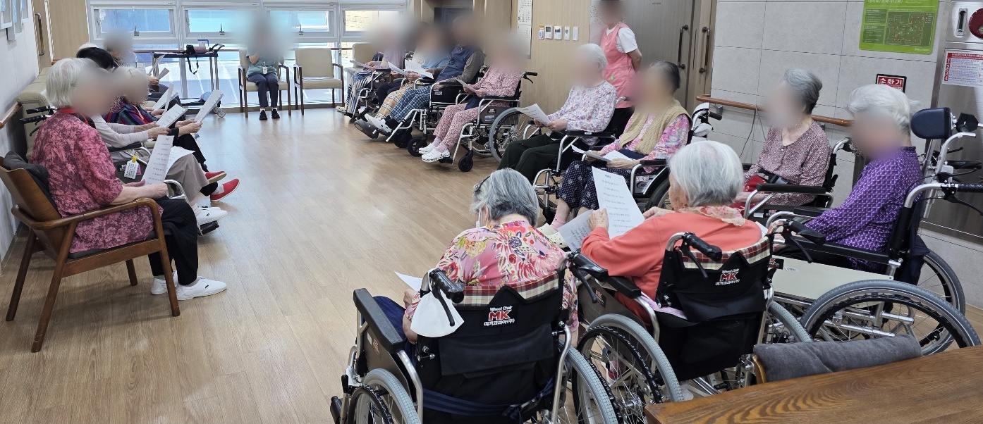 어르신께서 익숙한 노래를 선정하여 노래 가락에 맞춰 함께 부르는 활동입니다.