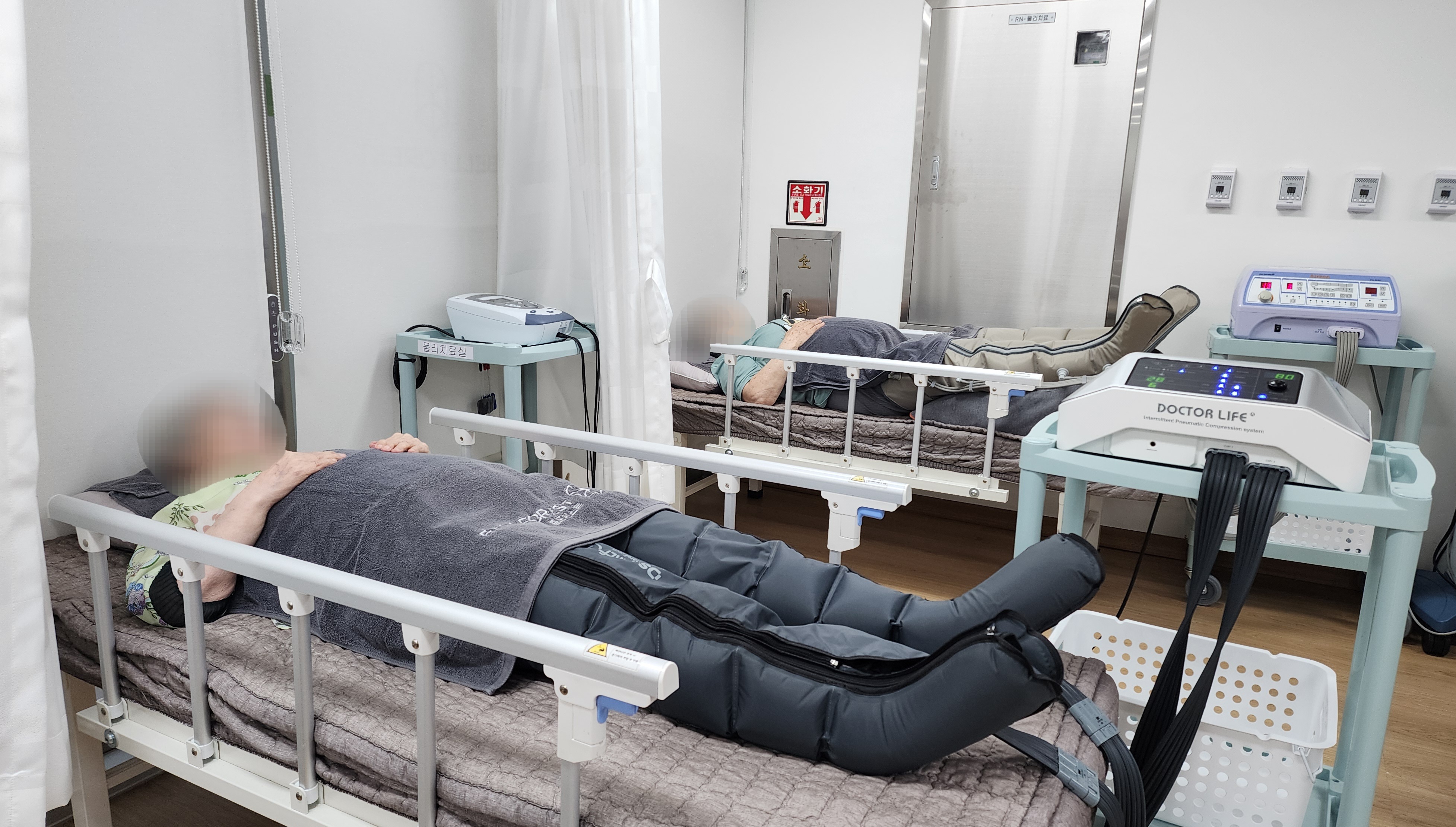 공기압 마사지를 해드리니, 다리 저림이 줄어 들었다고 좋아하셨습니다.