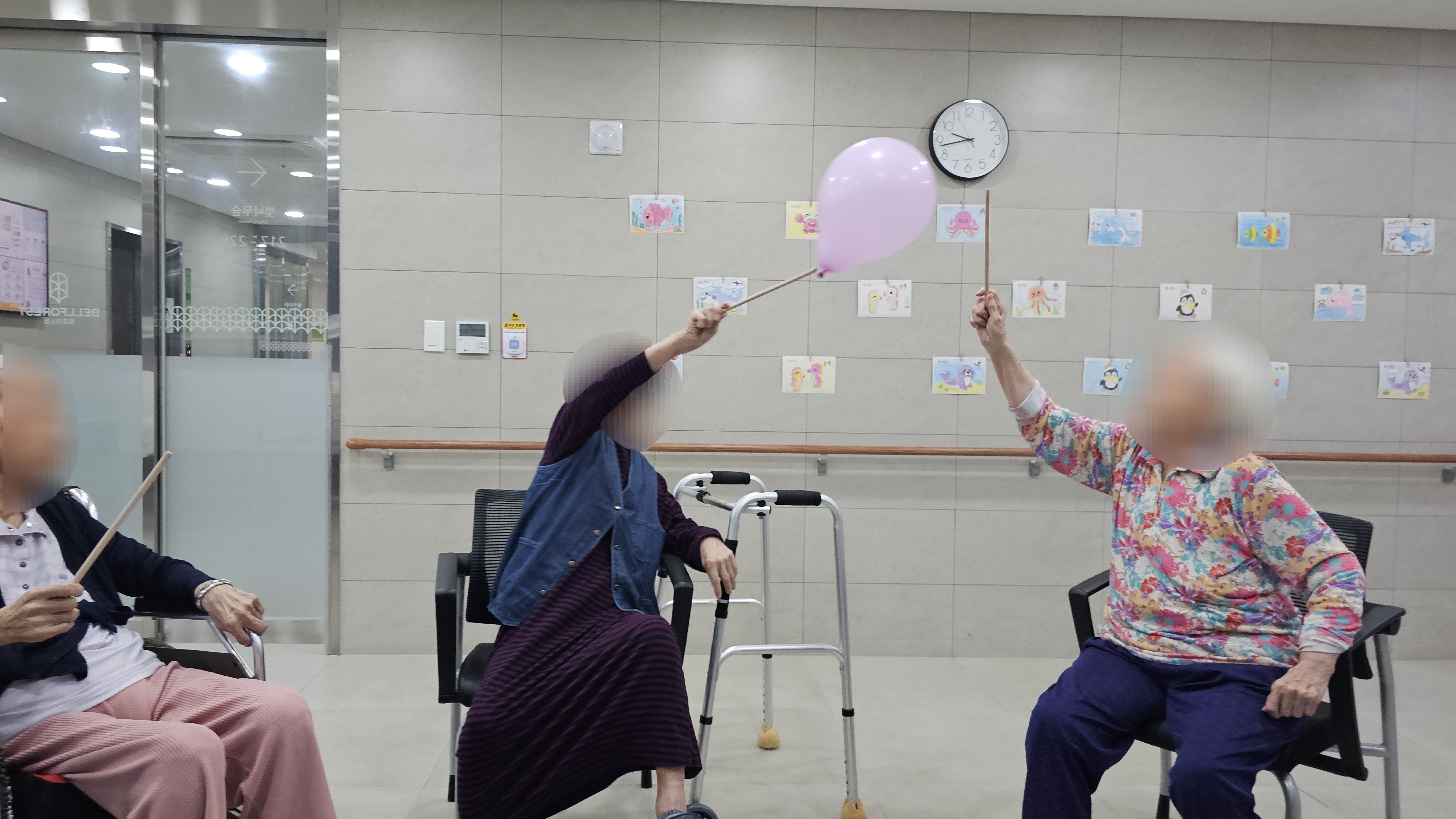 왼손, 오른손 번갈아 풍선을 주고 받으시며 재미있는 시간을 보내셨습니다.