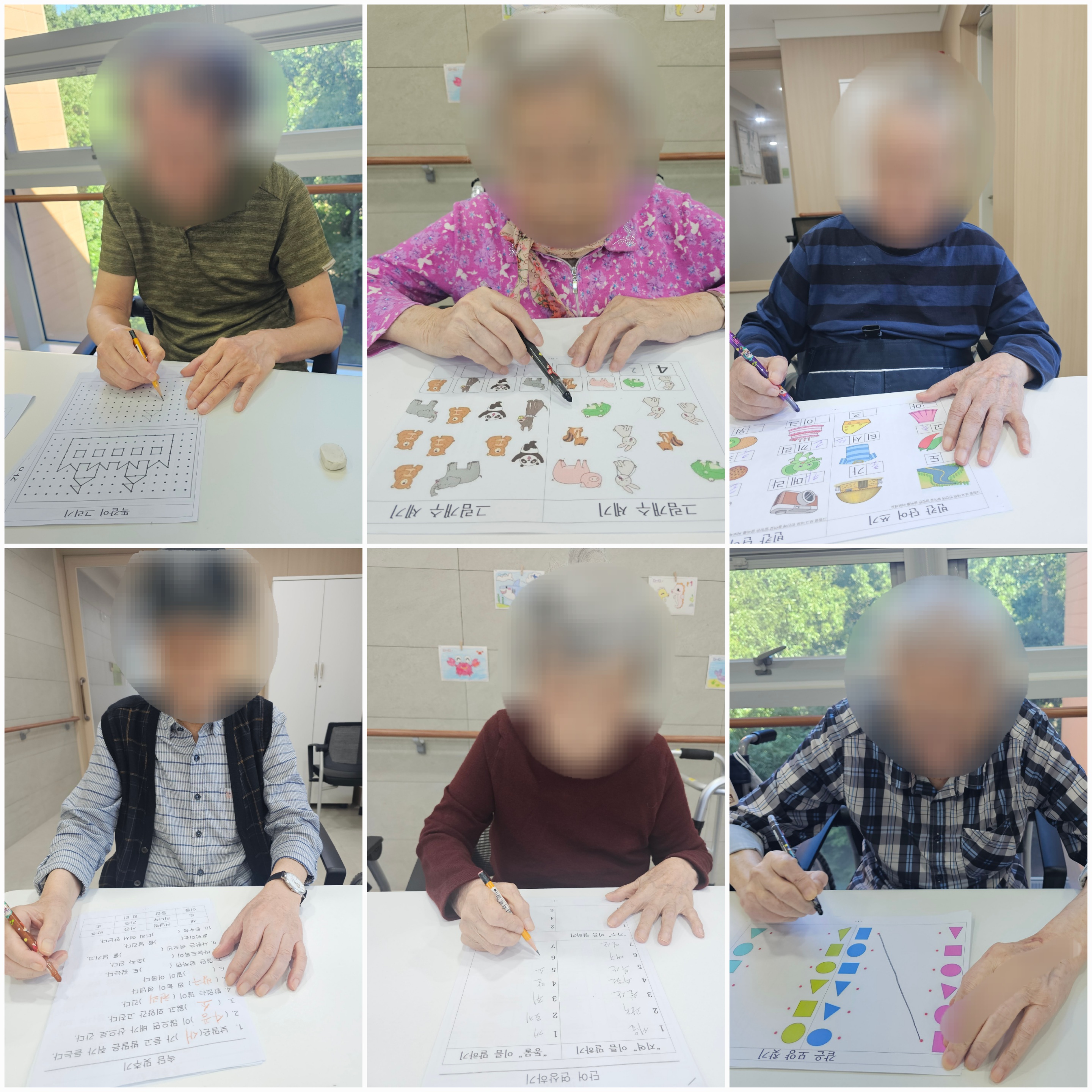집중력, 기억력, 판단력 등 인지기능 유지 및 향상을 위해 맞춤 인지 학습지 활동 시간입니다.