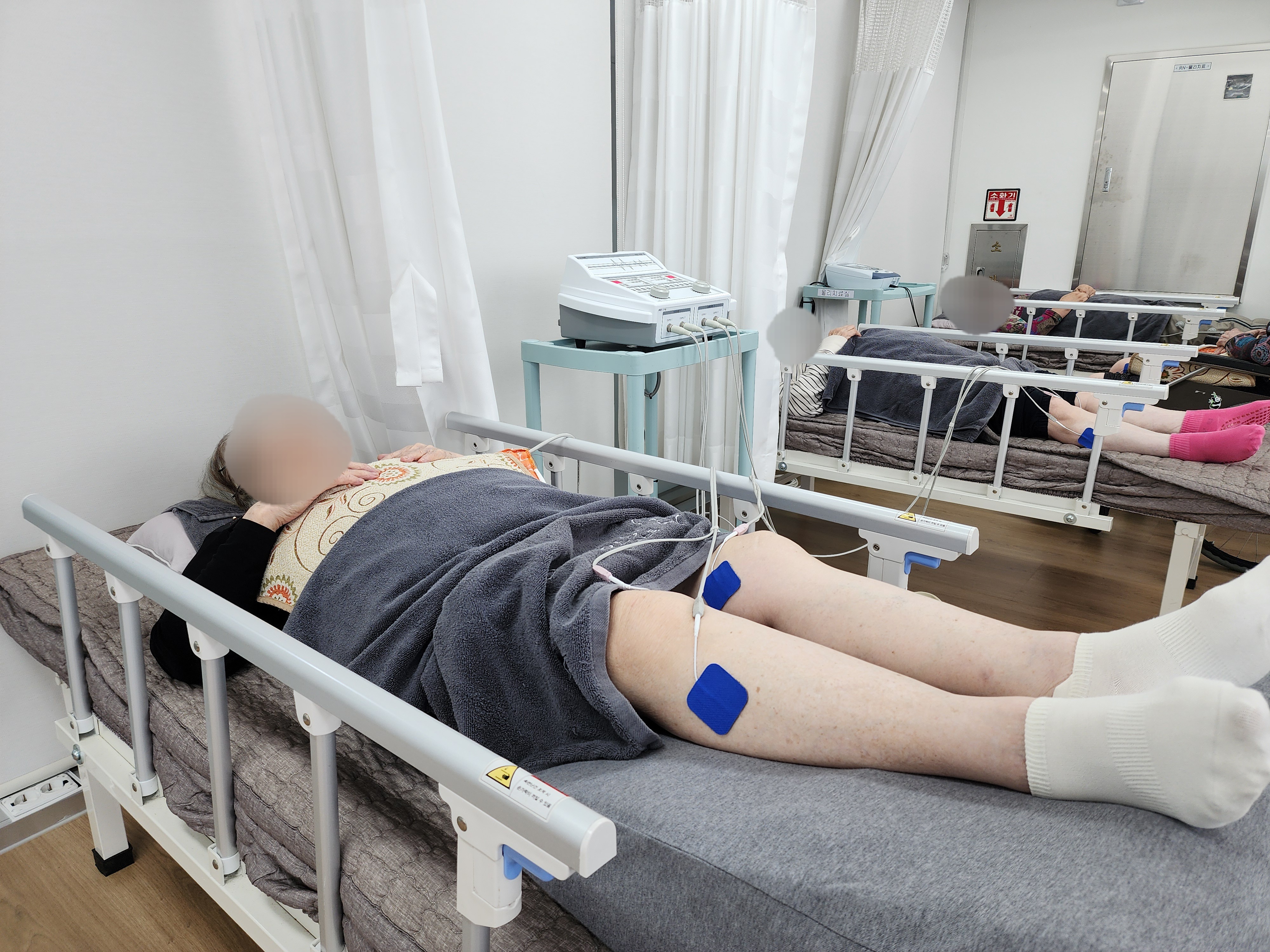 전기치료를 통해 진정효과, 통증완화, 염증 및 부종완화, 혈류량 증진 효과 등을 느낄 수 있습니다.