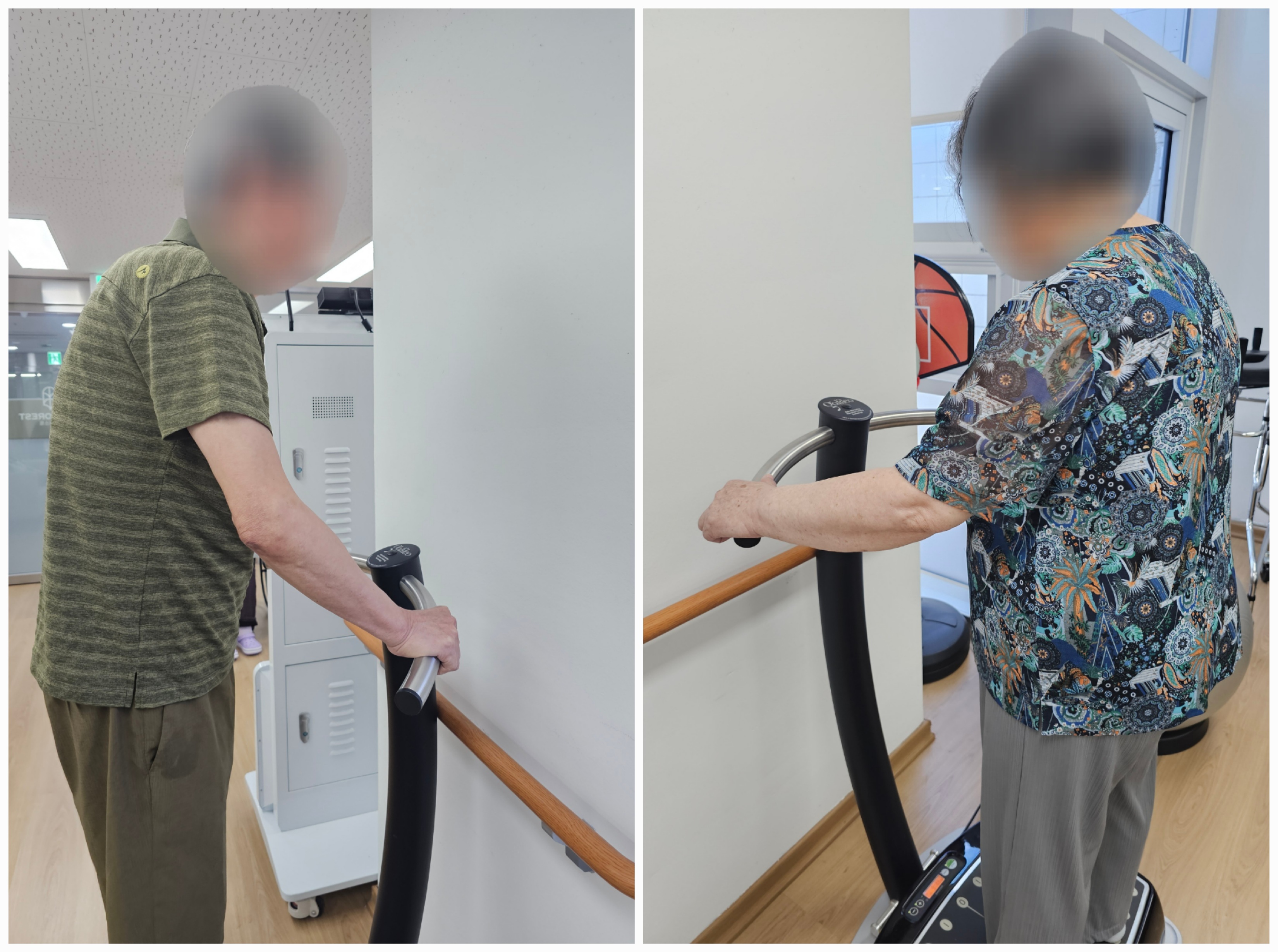 전신 진동자극을 통해 손상된 근육의 기능을 강화하고 재활 및 기능 회복을 위해 사용하는 허벅지와 종아리 근력강화, 협응력 향상,복근및 허리 근육 강화 할수 있는 전신운동 기구입니다.