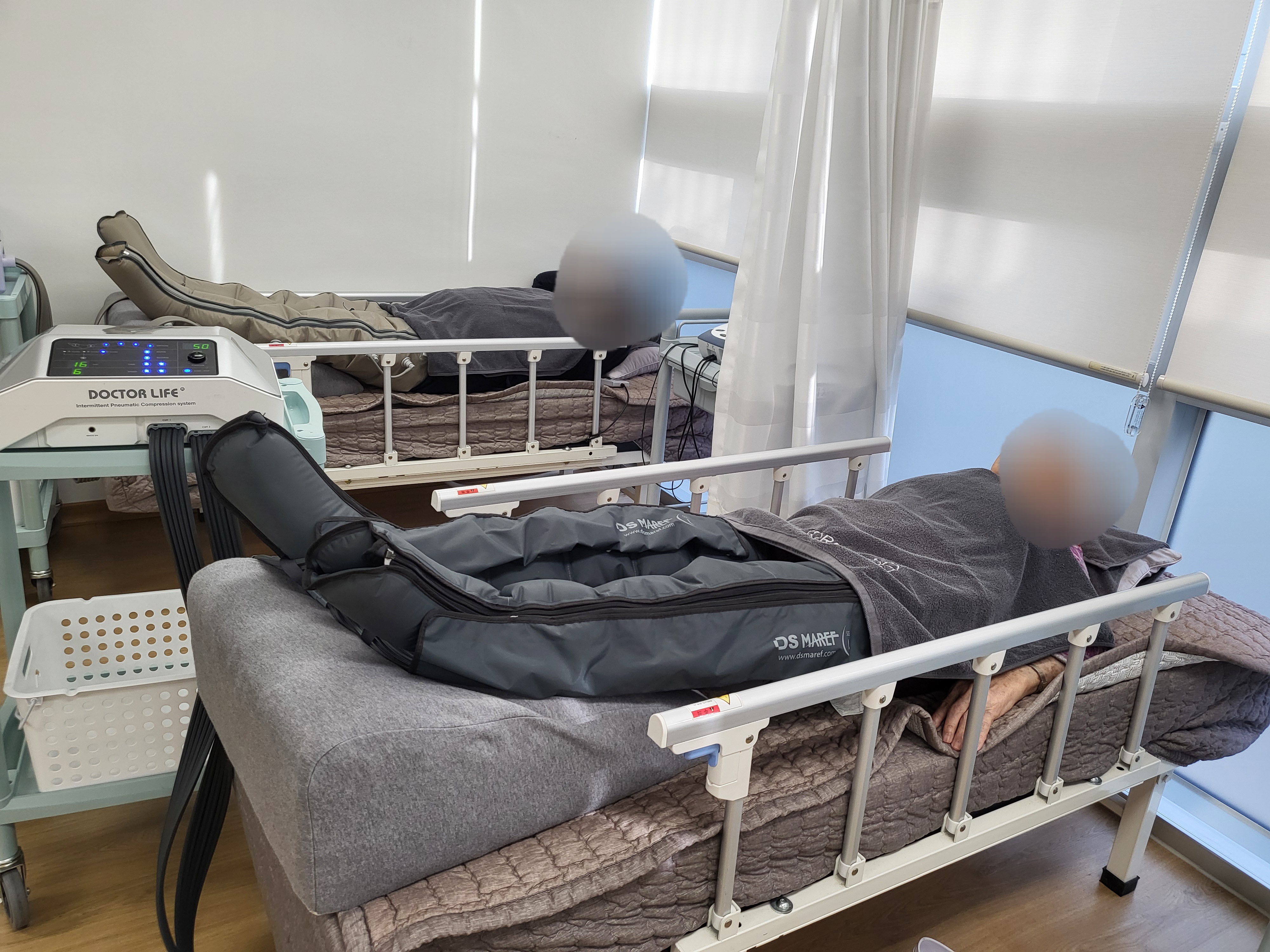 순차적 공기압으로 혈액 및 림프액의 순환을 촉진시키고 근조직의 압력을 증가시키는 치료입니다.