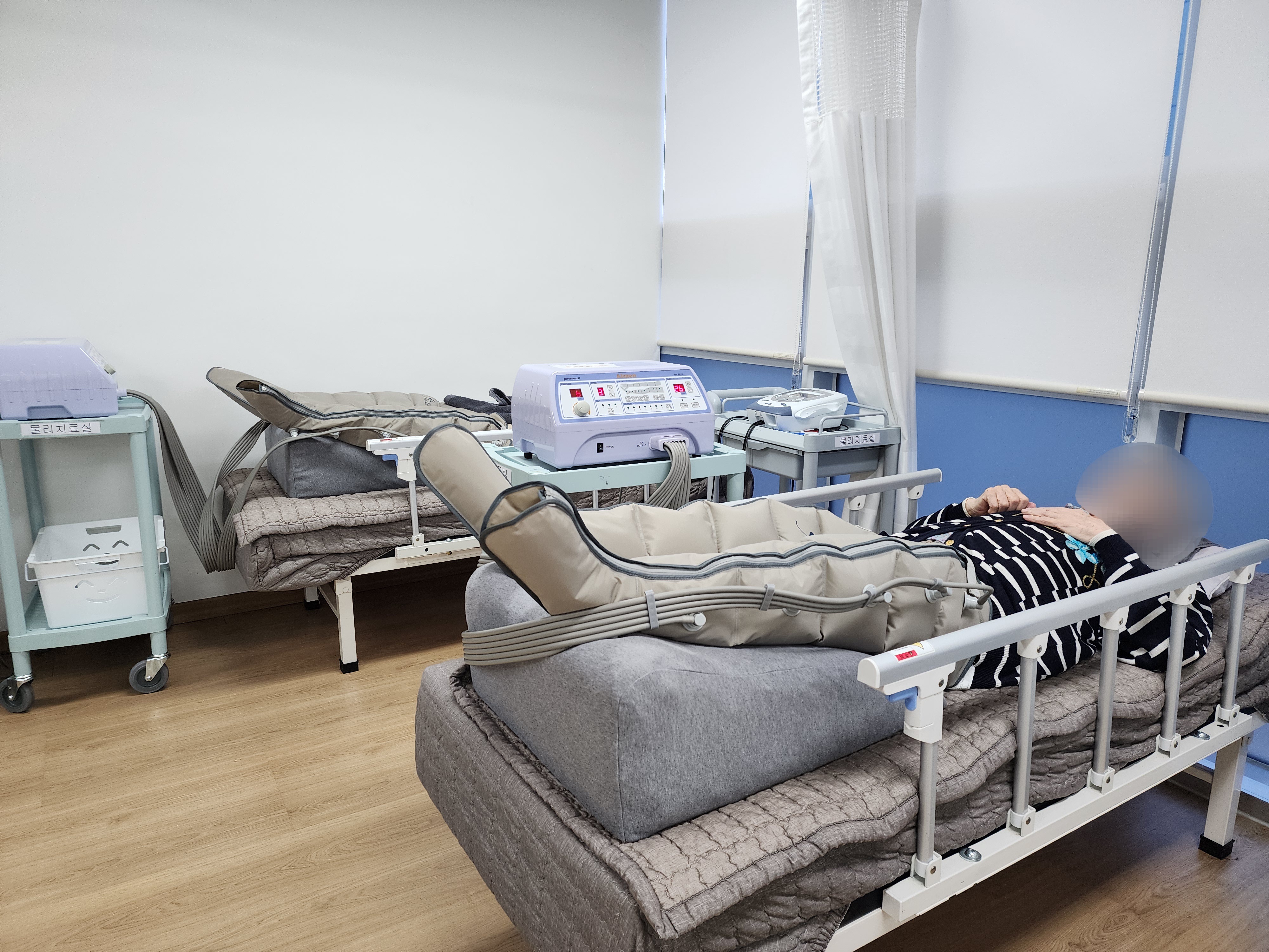 순차적 공기압으로 혈액 및 림프액의 순환을 촉진시키고 근조직의 압력을 증가시키는 치료입니다.