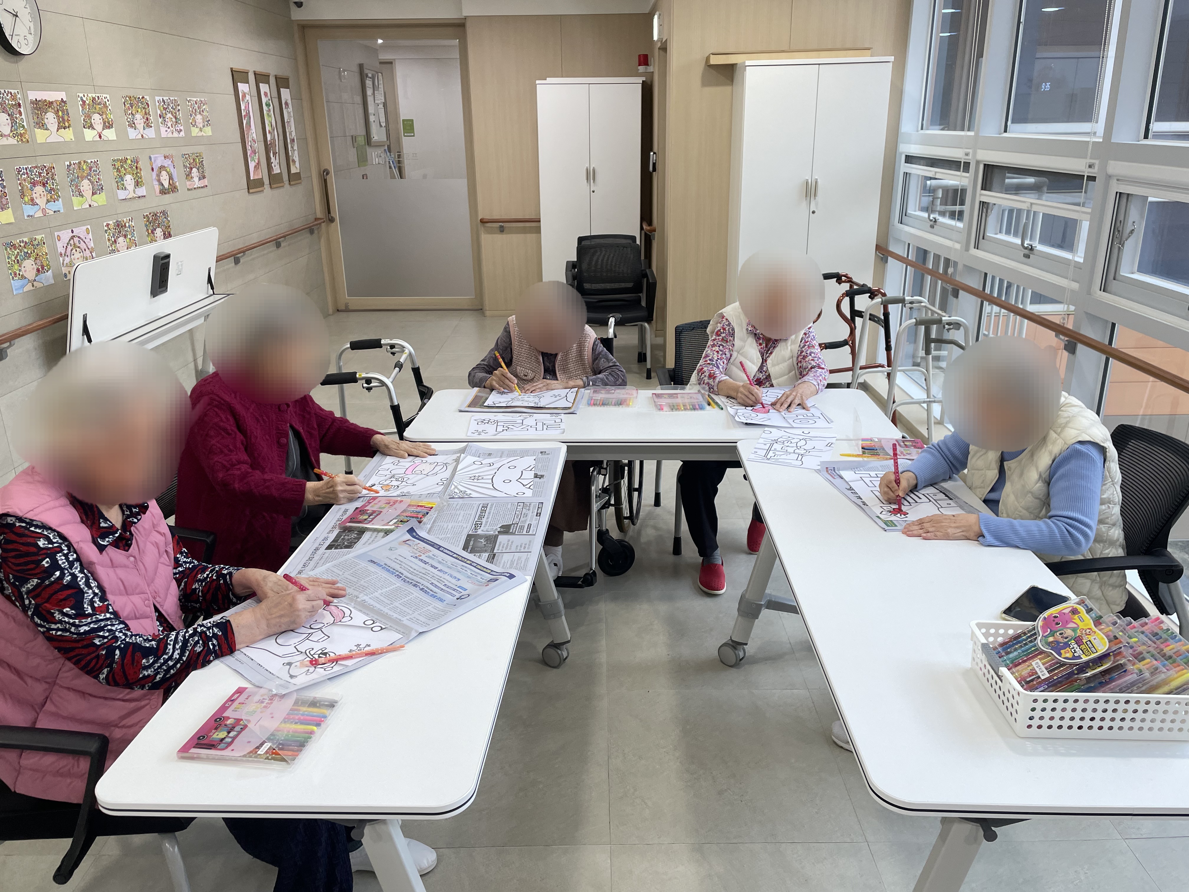 어르신들의 소근육 발달과 정서 안정에 도움을 주는 색칠하기 활동으로, 색을 고르고 칠하며 즐겁게 집중해 보는 시간입니다.