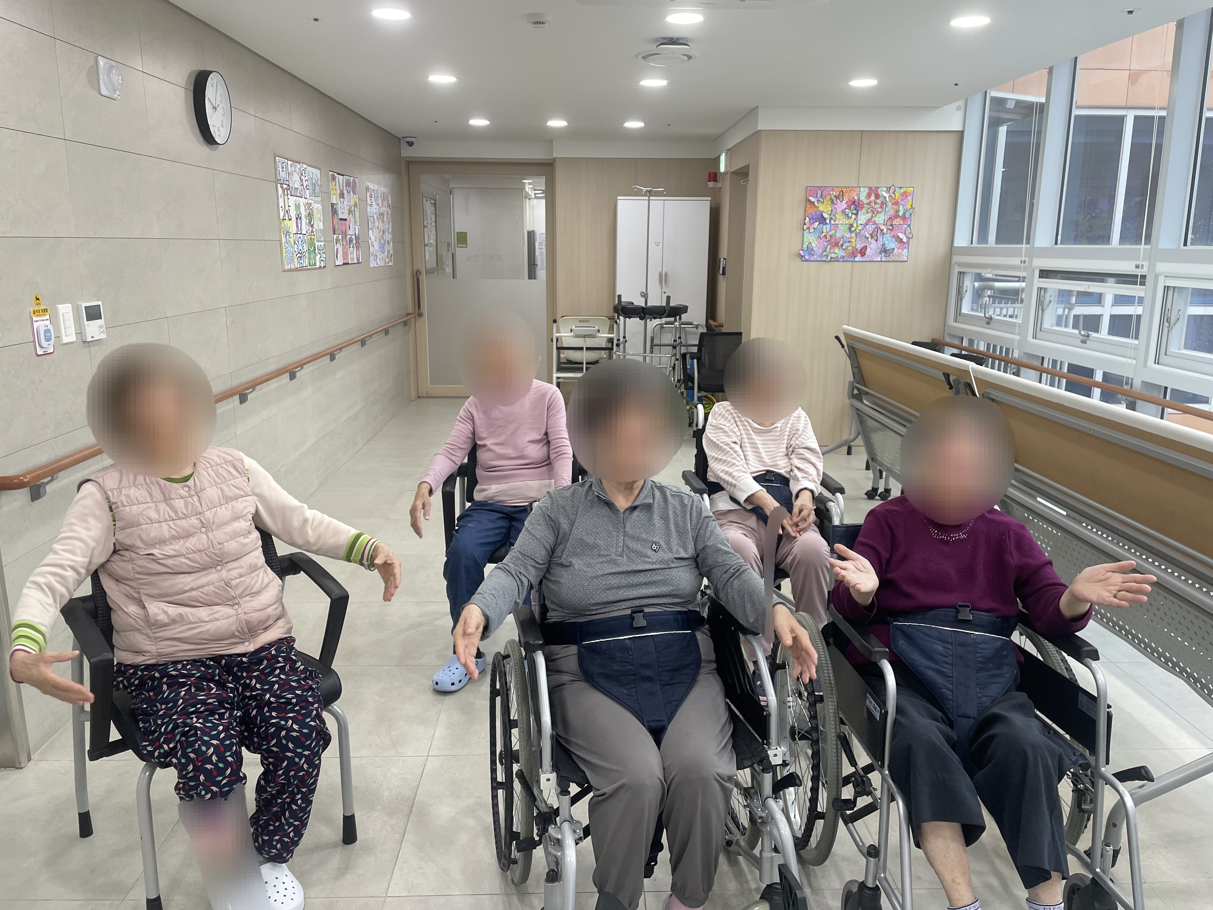 관절 운동과 스트레칭을 통해 근력 유지에 도움을 주고음악에 맞춰 즐겁게 신체를 움직이는 활동 시간입니다.