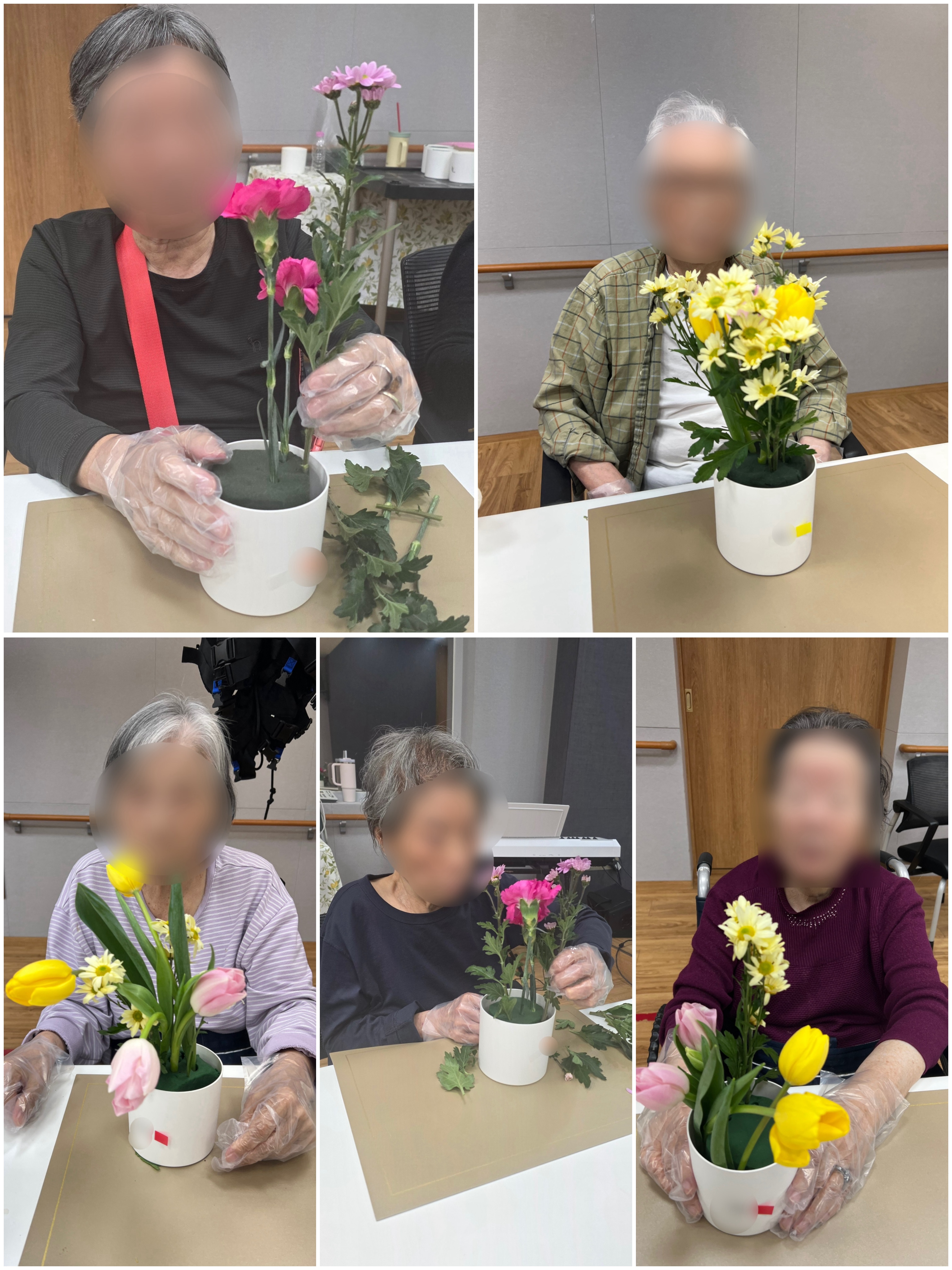 꽃으로 시각 및 후각을 자극하셨으며, 꽃 화분을 완성하여 성취감 및 자존감을 향상 할 수 있습니다.