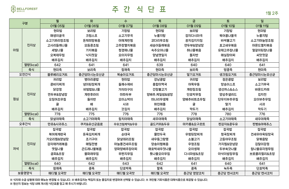 주간식단표 (2026.01.05~2026.01.11)