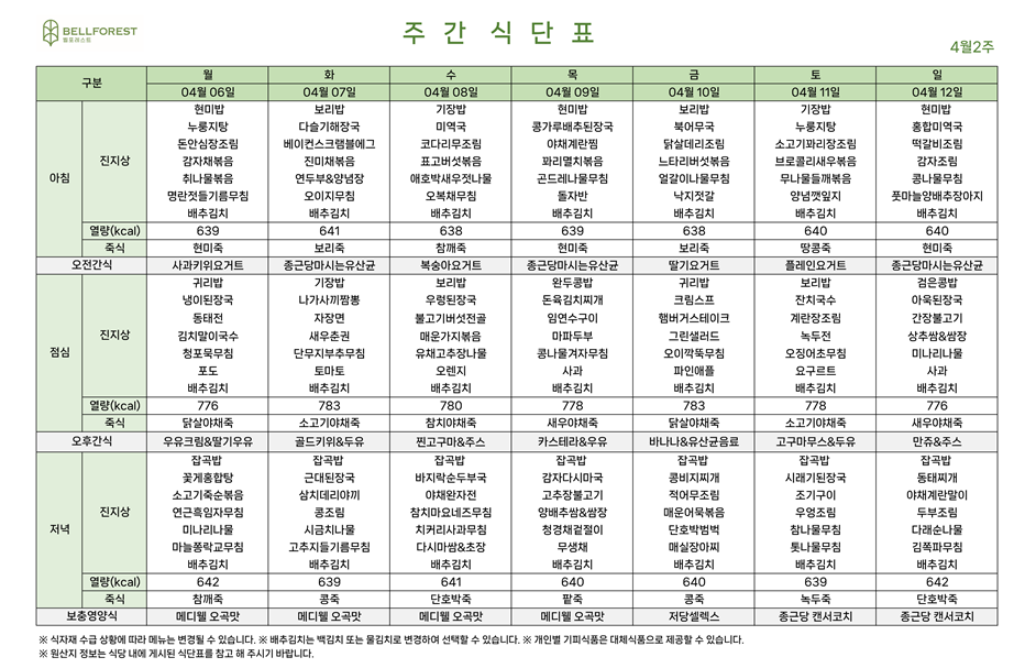 주간식단표 (2026.04.06~2026.04.12)