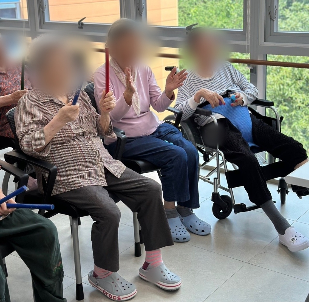 노래를 따라 부르고, 악기 연주를 통해 인지기능 및 소근육 운동과 스트레스 해소 기억력을 자극합니다.