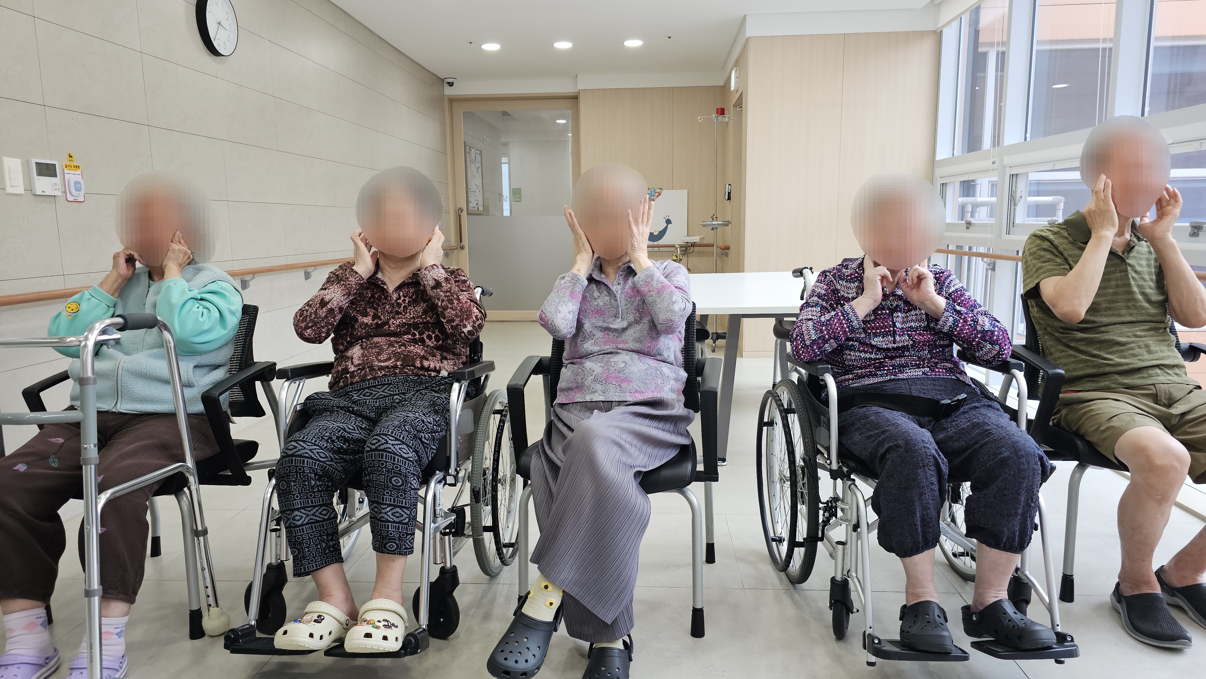 관절운동과 스트레칭을 위해 음악에 맞춰 신체를 움직이는 시간입니다.