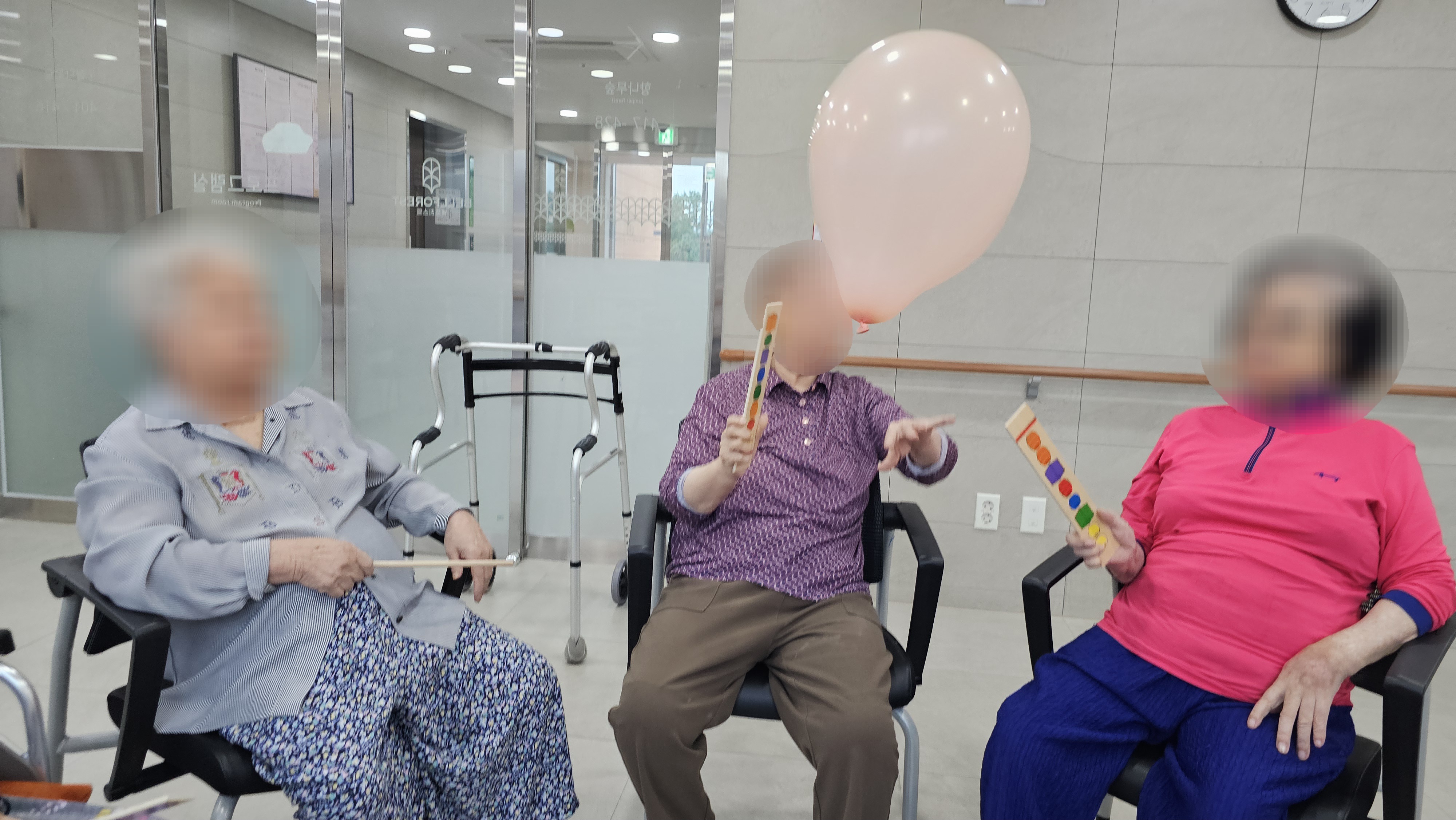 왼손, 오른손 번갈아 풍선을 주고 받으시며 재미있는 시간을 보내셨습니다.