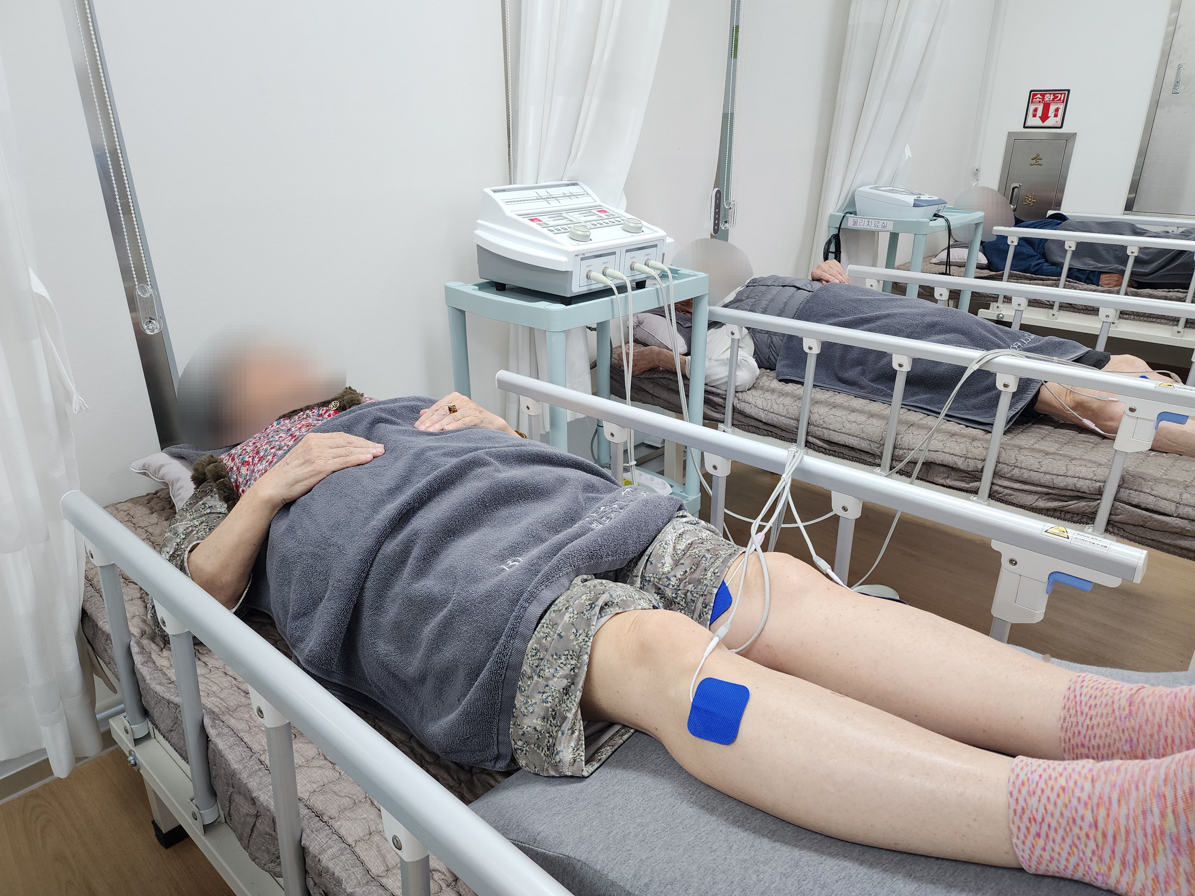 저릿저릿 아프던 무릎에 전기치료를 해드리니 통증이 덜 느껴진다며 편안해하십니다.