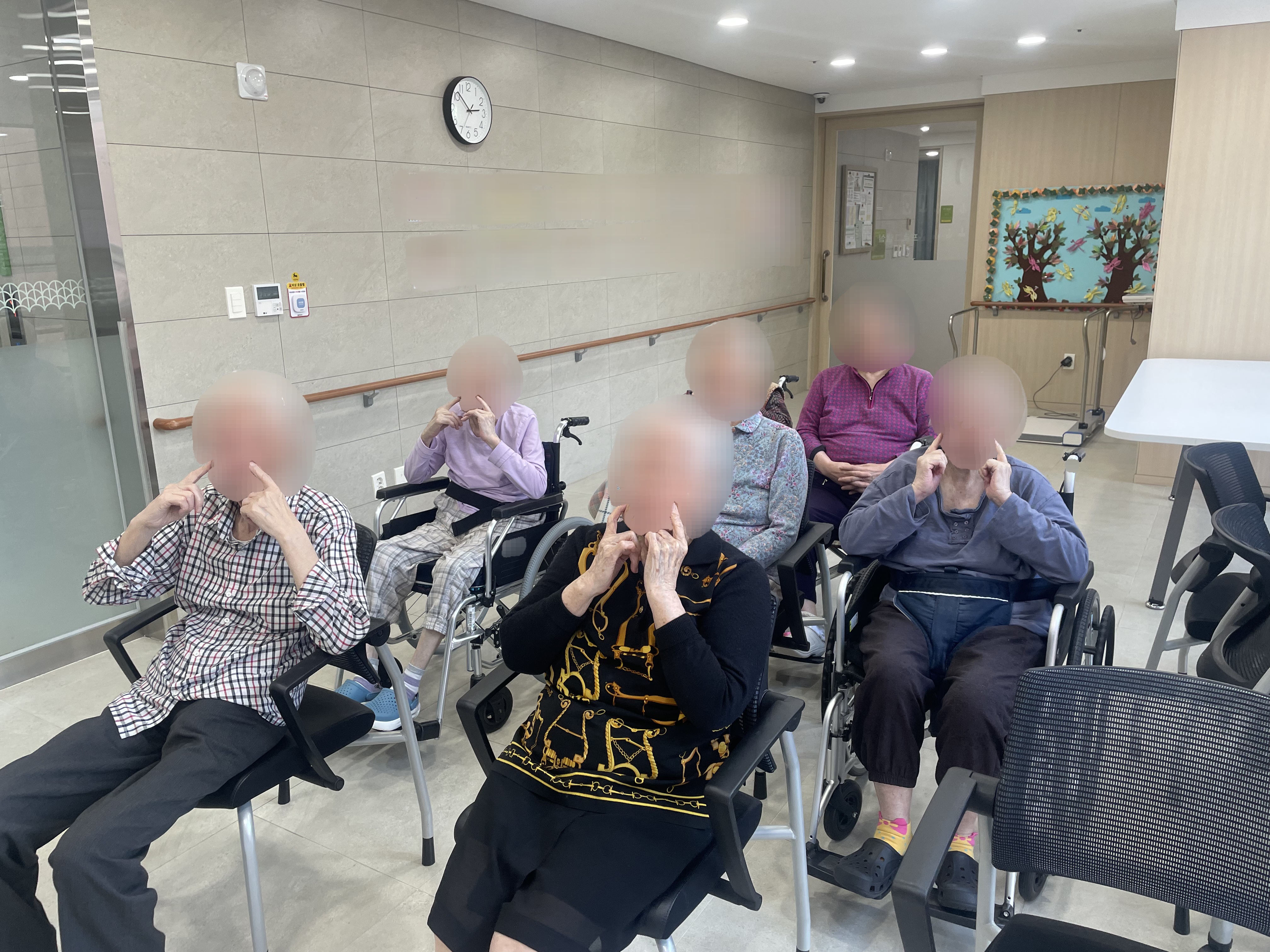어르신들의 연하기능 유지와 향상을 돕기 위한 구강체조 훈련을 진행 하였습니다.