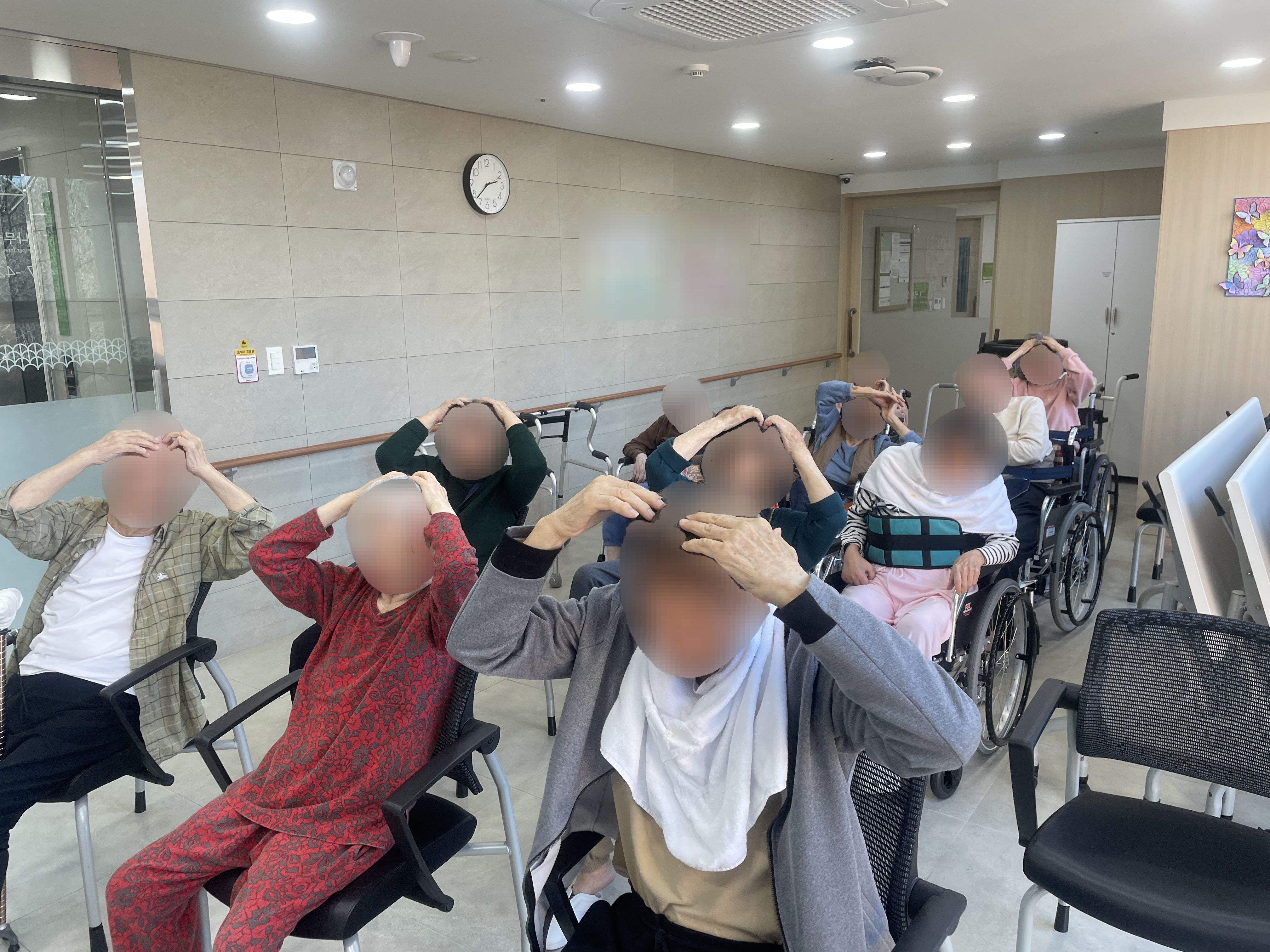 관절 운동과 스트레칭을 통해 근력 유지에 도움을 주고, 음악에 맞춰 즐겁게 신체를 움직이는 활동 시간입니다.